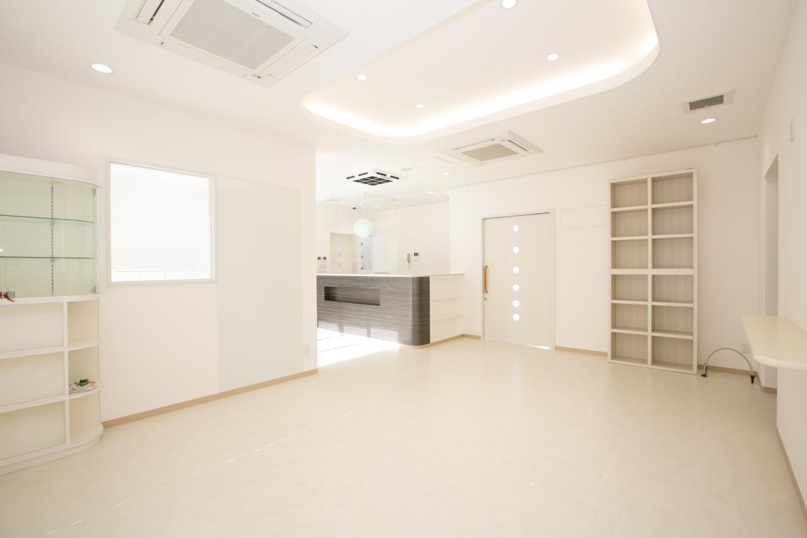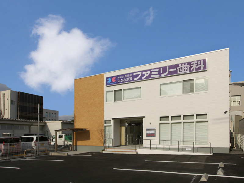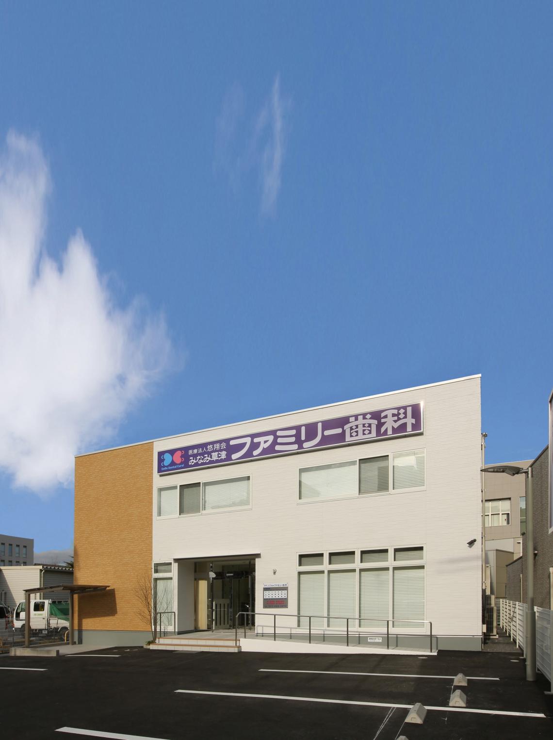 2階建て木造の歯科医院です。南草津駅徒歩2分で、便利な立地になります。8台の診療台が横にずらりと並び天井は広くとても明るいです。キッズスペースもあり、家族で安心して通院できる歯科医院です。